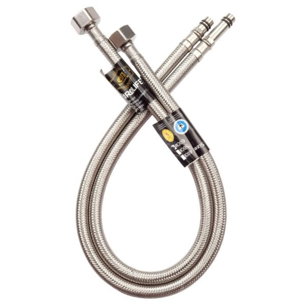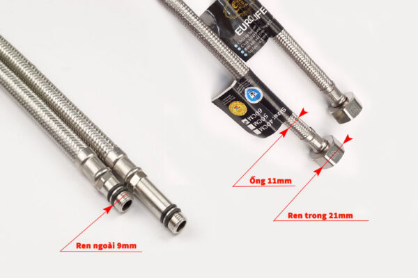 - Chiều dài : 60cm, 1 đầu ren chờ 21mm và 1 đầu phù hợp cho các đường chờ của vòi Lavabo nóng lạnh hoặc vòi rửa chén nóng lạnh
