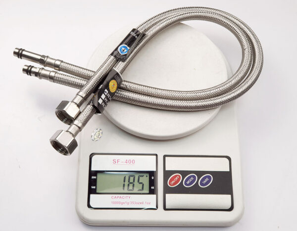Ngoài ra ống dẫn không bị giãn nở khi sử dụng và bị vỏ ống cứa đứt. Vỏ dây được làm từ inox 304, không bị sét rỉ theo thời gian. Hai đầu ốc của dây được làm từ Inox SUS304, bền bỉ không bị bể vỡ khi sử dụng. Roong cao su chịu nhiệt được ép sát cuối ốc, chặt chẽ không xì rỉ khi lắp đặt