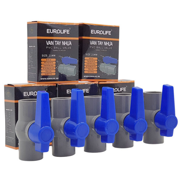 Bộ 5 van đúc PVC siêu nhẹ dùng cho ống 21, 27, 34, 60mm Eurolife EL-VD (Tay xanh)
