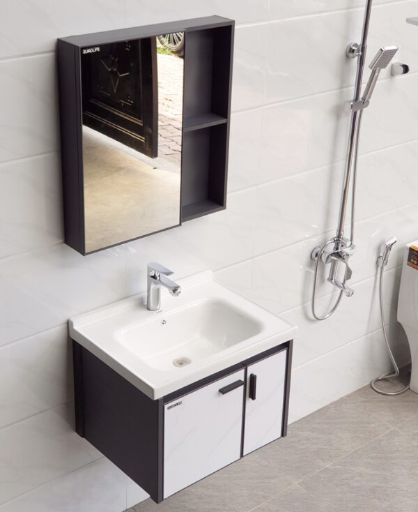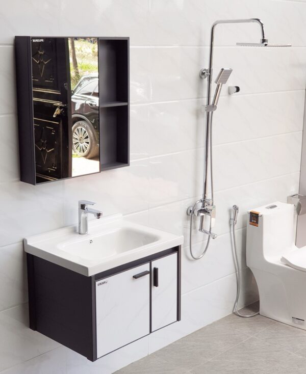 Bộ tủ Lavabo dùng cho phòng tắm, chất liệu Nhôm kháng nước Eurolife BLV-AL13 ( Trắng giả đá)
