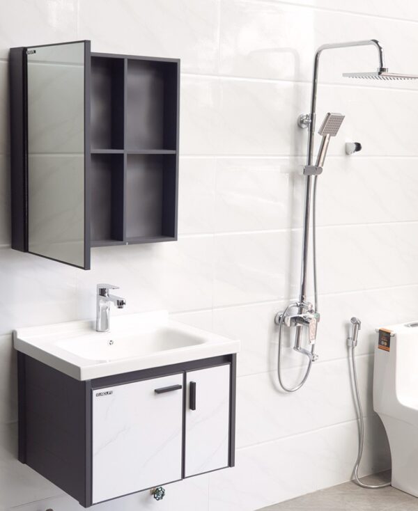 Tủ được làm từ chất liệu Nhôm Aluminum chất lượng cao, phủ Poly giả đá cho 2 cánh bền bỉ. Chất liệu Nhôm có khả năng kháng nước chịu ẩm cao, phù hợp với môi trường phòng tắm