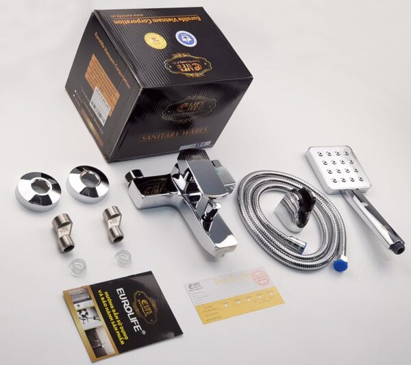 Sản phẩm đi kèm bộ tay dây sen siêu tăng áp Eurolife EL-121SH.