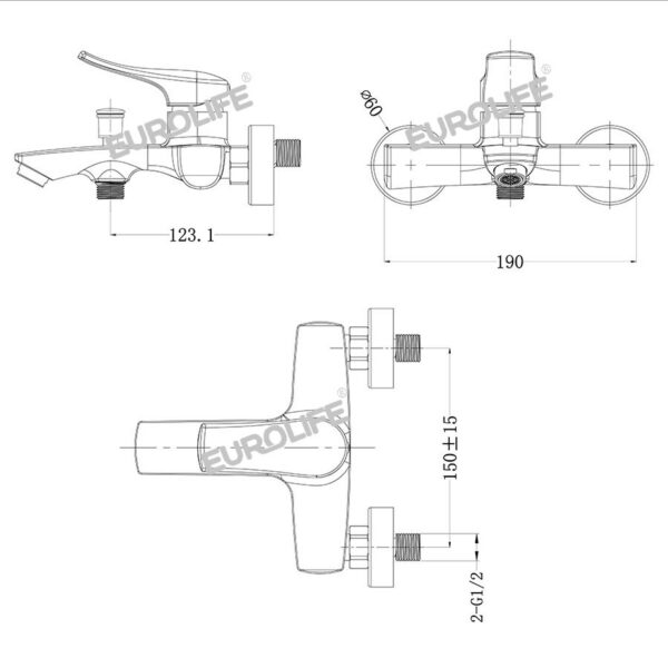 Bộ vòi sen nóng lạnh Đồng mạ Chrome Eurolife EL-ROS01 (Trắng bạc)