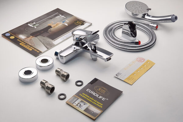Sản phẩm đi kèm bộ tay dây sen siêu tăng áp Eurolife EL-101SH.