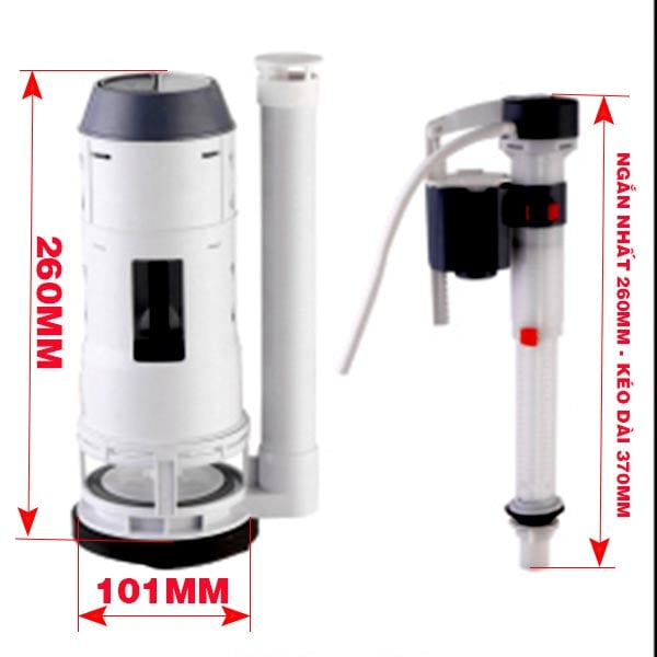 Cọc cấp nước với van phao thông minh, có thể điều chỉnh độ dài ngắn tùy theo kích thước của két nước. Chiều dài tối đa khi kéo lên tới 37cm