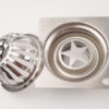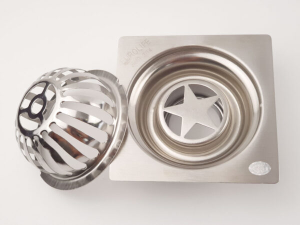 Cầu chắn rác được thiết kế đi kèm thân tiện lợi cho việc lắp đặt. Thân cầu chắc chắn với Inox dày 1.5mm được nhập trực tiếp từ Nhật Bản. Lồng cầu được thiết kế với 2 chốt giữ chắc chắn, giúp cầu chắn rác hoạt động ổn định.
