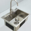 Chậu được tích hợp một lỗ chờ cho việc gắn bình xịt nước rửa chén, hoặc có thể dùng để lắp vòi nước tinh khiết.
