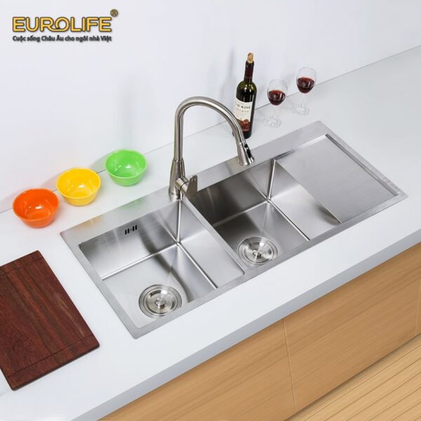 Chậu Inox SUS304 2 hố cân, kèm bàn chờ Eurolife EL-LS12050