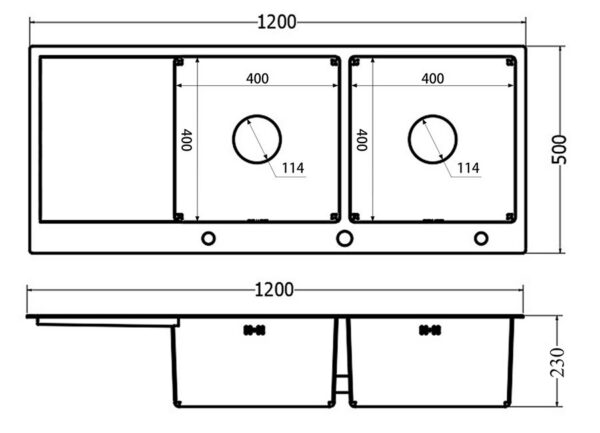 - Kích thước 1200x500x230 ( Kích thước khoét đá : 1180x480mm)