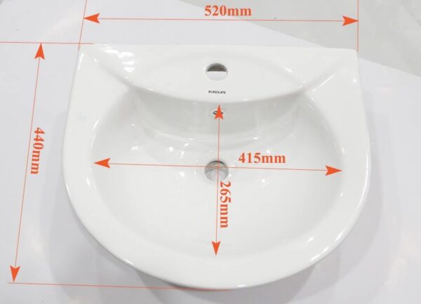 Chậu Lavabo Eurolife được thiết kế với 1 lỗ xả tràn trên thân chậu, 1 lỗ xả đại dưới đáy chậu, có thể kết hợp các bộ xả Lavabo của Eurolife hoặc bộ xả khác có trên thị trường. Lỗ chờ lắp vòi với đường kính 35mm