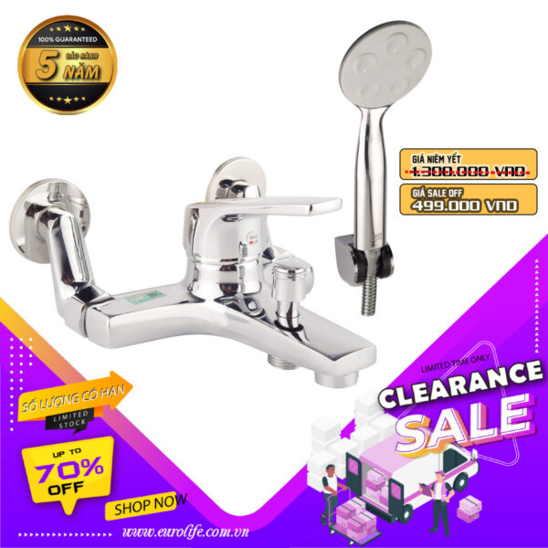 Bộ vòi sen nóng lạnh chân ngoài Đồng mạ Chrome Eurolife EL-3001-New (Trắng bạc)