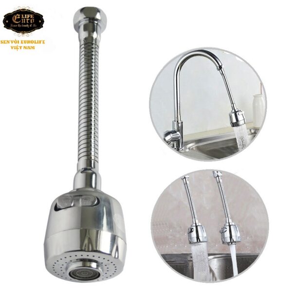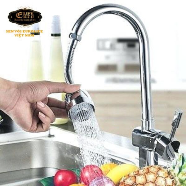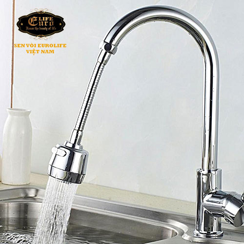Đầu vòi tăng áp cần lò xo Inox Eurolife EL-VM03 (Trắng bạc)