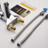 2- Set of 2 SUS 304 stainless steel hoses, 2 mounting brackets, 2 rubber gaskets