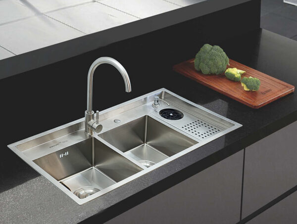 Double-bowl cast sink with built-in dishwasher, made of SUS 304 stainless steel, Posco – Korea (Manufactured in Vietnam) Eurolife EL-LS10050