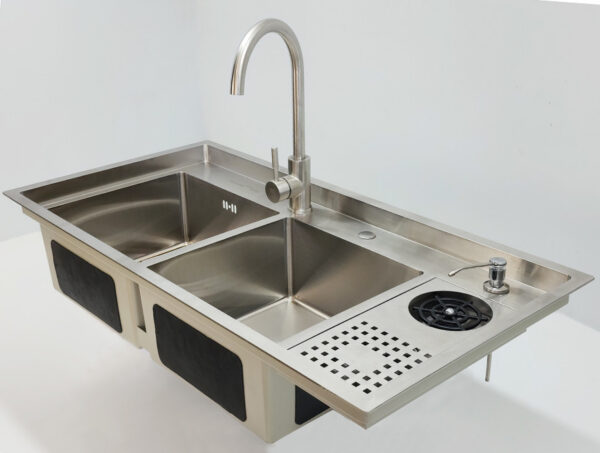 This high-quality product features a powder-coated finish and incorporates soundproofing panels on all four sides and the bottom of the sink, ensuring a quieter kitchen environment whenever you use the water.
