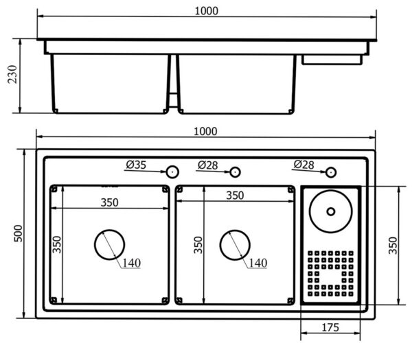 • Dimensions: 1000x500x230 (Cutout dimensions: 980x480mm)