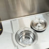 The sink comes with a sturdy, one-piece stamped stainless steel basket that fits perfectly inside the sink.