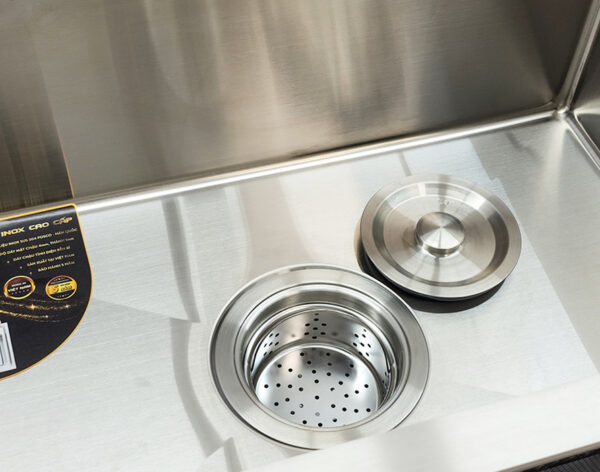 The sink is made from pure SUS 304 stainless steel from Posco Corporation – Korea, ensuring the product is sturdy, durable, and maintains its shine over time. It does not affect the health of users or the environment. It is easy to clean and maintain. The material thickness is up to 4.0mm and 1.2mm, ensuring long-lasting durability.