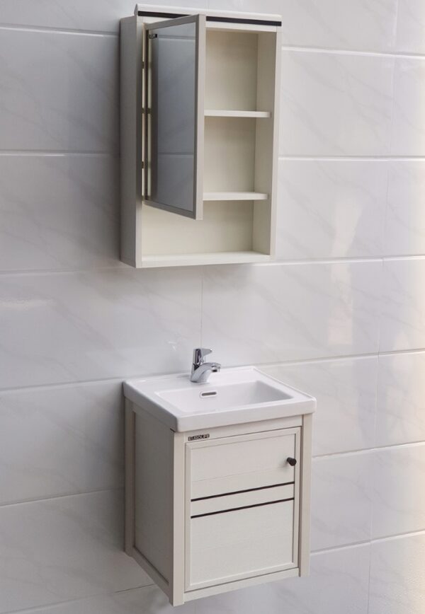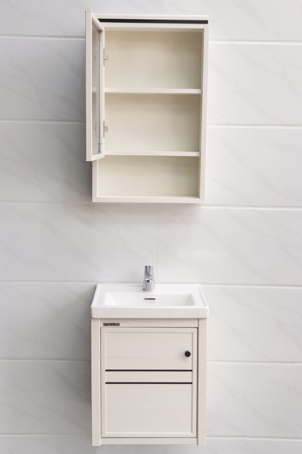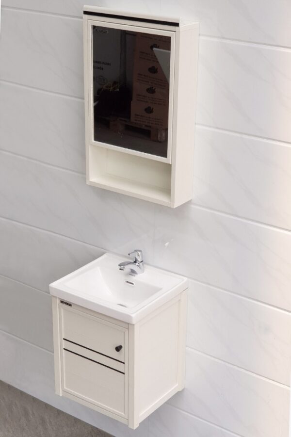 The cabinet is made from high-quality aluminum, coated with durable melamine. Aluminum is highly water-resistant and moisture-resistant, making it suitable for bathroom environments.