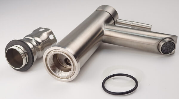 The faucet body is cast from pure SUS 304 stainless steel, lead-free (Pb), safe for users’ health and environmentally friendly.