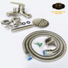The product comes with a shower set, including a 304 stainless steel shower head, a 150cm stainless steel hose, and a shower head holder.