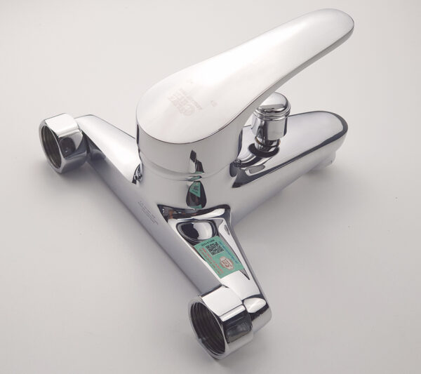 Genuine smart electronic label for product traceability is affixed to the faucet body.