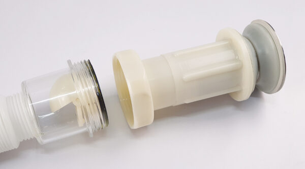 Transparent plastic compartment for checking for blockages.