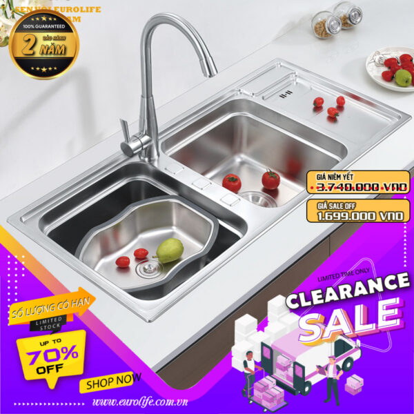 Few people know that the drain of a kitchen sink is a huge breeding ground for bacteria in your kitchen. The waste filters from other brands are often made of plastic and easily accumulate dirt, creating a breeding ground for bacteria right on the utensils you use to wash food and daily household items. Eurolife has researched and completely improved this drawback. With a design made entirely of high-grade 304 stainless steel, Eurolife’s waste filter can be easily cleaned both inside and out. This helps you thoroughly solve a dangerous problem that we often overlook and don’t realize. The waste basket is designed with a handle, making it easy to remove from the filter and clean.