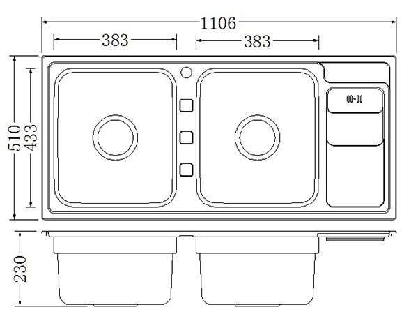 Product dimensions 1106 x 510 x 230mm