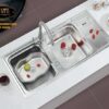 The sink is stamped from a single sheet of high-grade stainless steel, ensuring a sturdy, durable, and long-lasting shine. It poses no health risks to users or the environment. It is easy to clean and maintain. With a material thickness of up to 1.0mm, it is built to last for years.