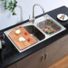 The sink is stamped from a single sheet of pure SUS 304 stainless steel, ensuring a sturdy, durable, and long-lasting shine. It poses no health risks to users or the environment. It is easy to clean and maintain. With a material thickness of up to 1.0mm, it is built to last for years.