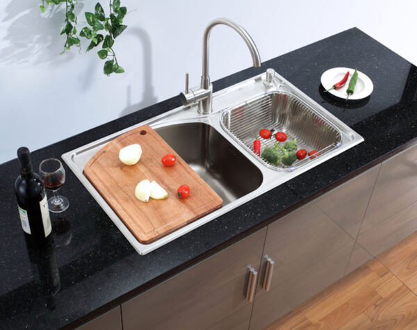 The sink is designed with sturdy, angular lines, adding a touch of elegance to a modern kitchen! Raised edges around the sink prevent water from splashing outside the washing area, keeping the kitchen drier and cleaner.
