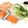 Cut the vegetables into thin strips, suitable for various root vegetables. Easily trim or decorate orange and grapefruit peels.