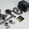 The complete product set includes: 1- Shower head body 2- Set of 2 SUS 304 stainless steel pedestals, 2 mounting brackets, 2 rubber gaskets 3- Shower hose set 4- User manual and warranty card