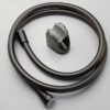 The shower head has a sophisticated design and a strong water flow. It features a PVC hose with brass anti-twist fittings.