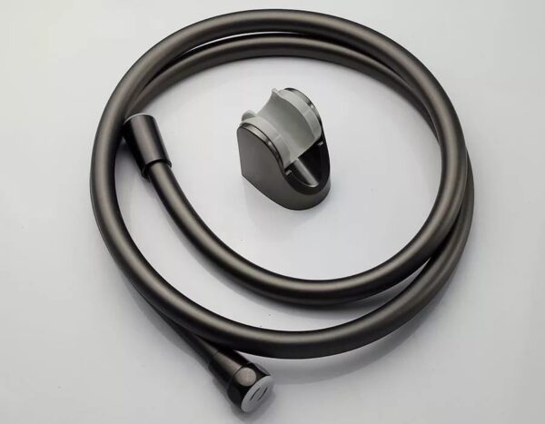 The product comes with a high-pressure shower head and hose set. * Shower head material: ABS plastic with electrostatic gray coating. * 150cm long PVC stainless steel shower hose. * 3 flow modes with powerful pressure boosting function. * Adjustable swivel holder for directing the flow.