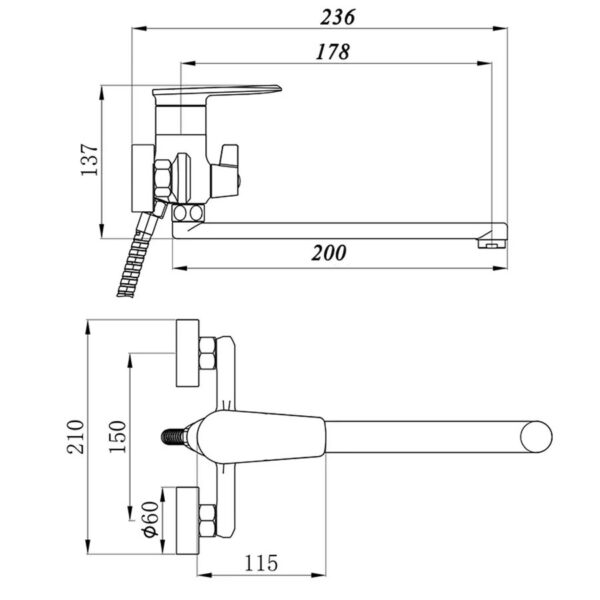Eurolife EL-GRAY 03 Hot and Cold Shower Set for Bathtubs