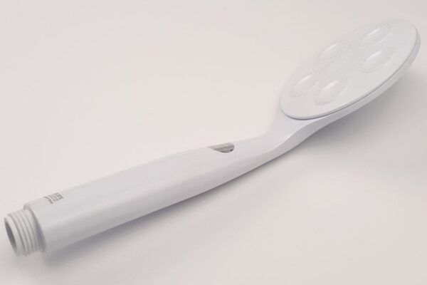 The shower head is made of health- and environmentally friendly ABS plastic, which is white and glossy.