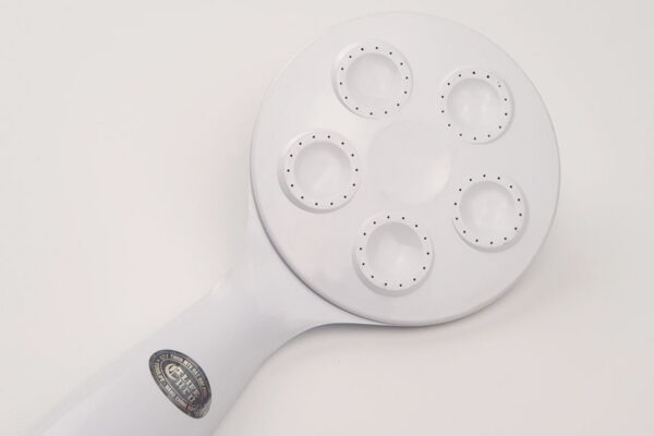 The 5 spray nozzles create crisscrossing water streams, resulting in a fine, gentle spray. The ultra-thin handle design makes the product lightweight and easy to use during showering.