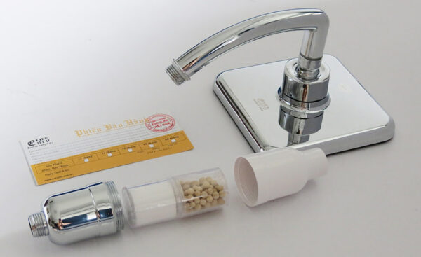 Mineral beads and Vitamin C in the filter core of the Eurolife EL-H145 shower head.