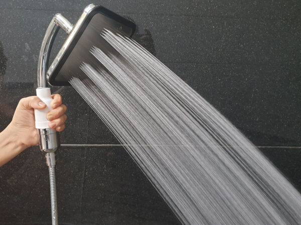 The shower head is designed to be square and large, measuring 145mm, making it a convenient replacement for a standing shower head.