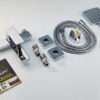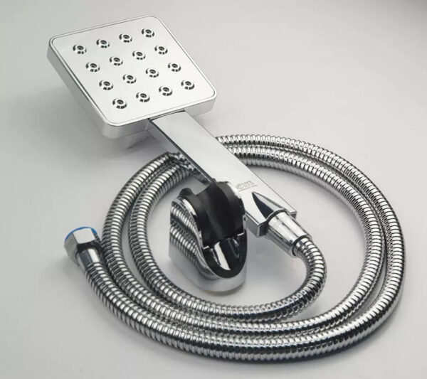 The complete product set includes: 1- Shower head body 2- Set of 2 SUS 304 stainless steel pedestals, 2 mounting brackets, 2 rubber gaskets 3- Shower hose set 4- User manual and warranty card