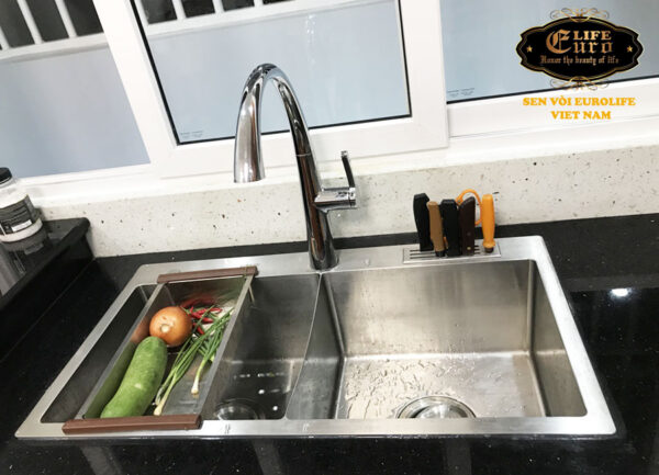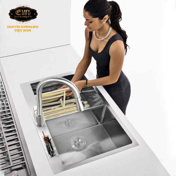 Few people know that the drain of a kitchen sink is a huge breeding ground for bacteria in your kitchen. The waste filters from other brands are often made of plastic and easily accumulate dirt, creating a breeding ground for bacteria right on the utensils you use to wash food and daily household items. Eurolife has researched and completely improved this drawback. With a design made entirely of high-grade 304 stainless steel, Eurolife’s waste filter can be easily cleaned both inside and out. This helps you thoroughly solve a dangerous problem that we often overlook and don’t realize. The waste basket is designed with a handle, making it easy to remove from the filter and clean.