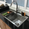 The sink is designed with a sturdy, angular, and robust structure, bringing elegance to a modern kitchen!