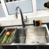 The sink is coated with a sound-dampening paint on the bottom, helping to keep your kitchen quieter whenever you use the water.