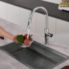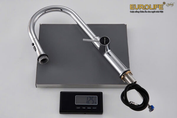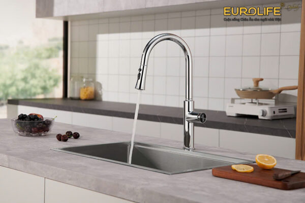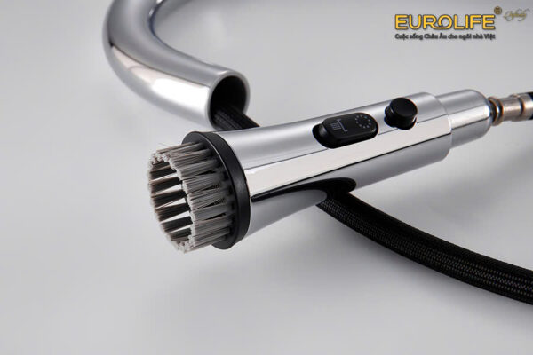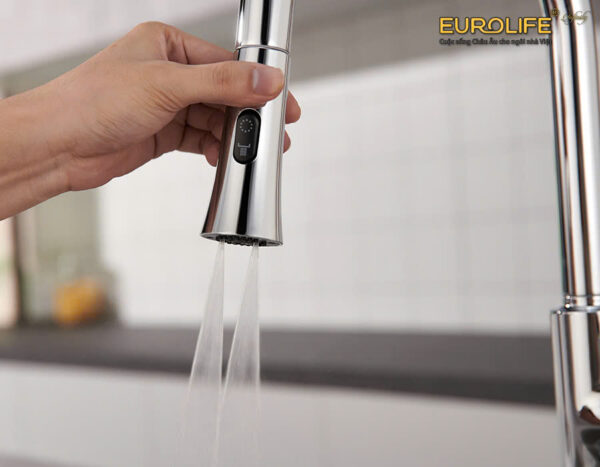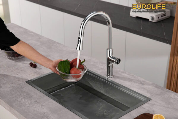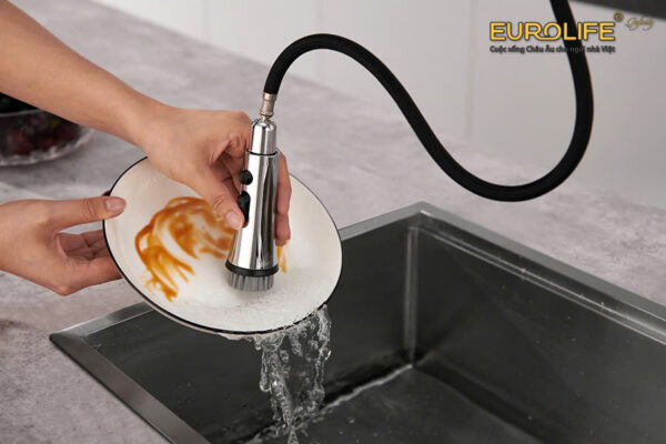 The faucet features a superior design with a pull-out spout. Users can easily move the spout to areas far from the washing area, which is very convenient.