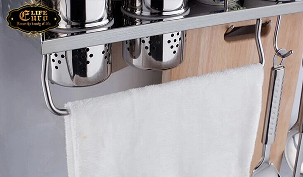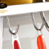 The rack is designed with hooks, making it very convenient to hang cutting boards, spoons, ladles, and other kitchen utensils.
