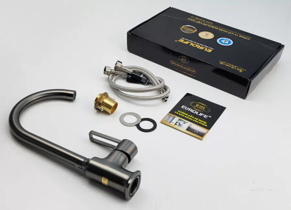 Eurolife EL-KM13 Hot and Cold Kitchen Faucet, Powder-Coated Brass, Grey