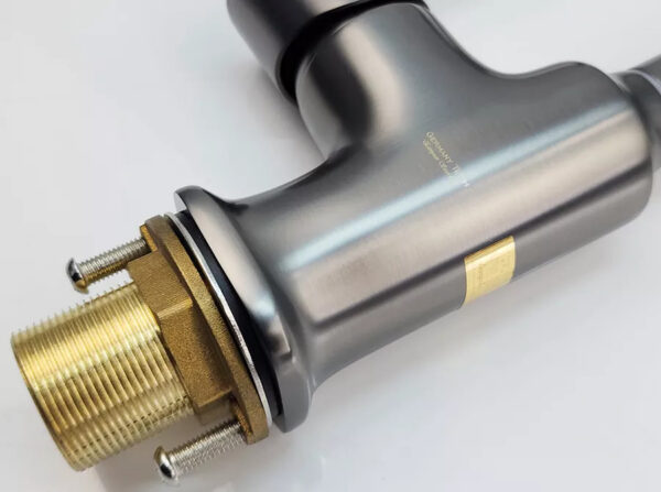 The faucet body is electroplated using advanced technology. The elegant grey color, with a thickness of up to 11um, ensures the faucet remains shiny and the plating will not chip or peel during use (certified by Quatest 3).