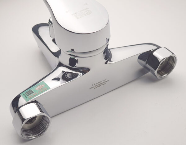 Genuine smart electronic label for product traceability is affixed to the faucet body.